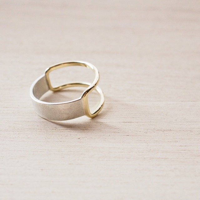シルバーの板材、真鍮丸棒を組み合わせたringです。 ◼︎素材 ▫︎brass(真鍮) ▫︎silver ◼︎仕上げ ▫︎マット(シルバー部分) ▫︎鏡面(真鍮部分) ◾️お値段はリング1つの価格です。 ◾️ご注文を受けてから制作しているため、発送まで1ヶ月程お時間を頂くことがございます。 ◾️ひとつひとつ手作りしているため、細部など写真と異なることがありますので、 ご了承ください。 ◾️ブランド名の『:K』の刻印が内側に入ります。 ◾️ここにないサイズ (12.5号などの『.5』のサイズや 小さい号数、大きい号数)も承ります。 その際は備考欄にご記入下さい。 ◾️華奢なつくりとなっております。 強い衝撃を与えますと変形の原因になりますので お取り扱いには十分お気をつけください。