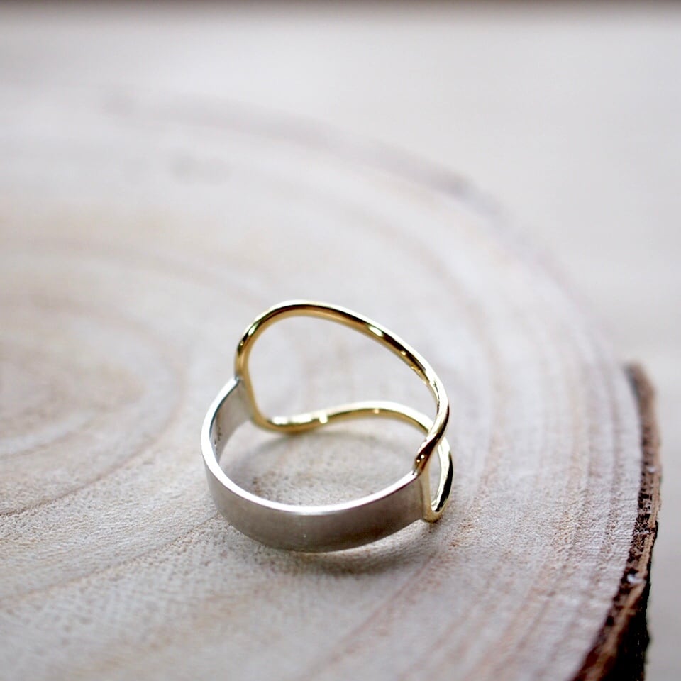 シルバーの板材、真鍮丸棒を組み合わせたringです。